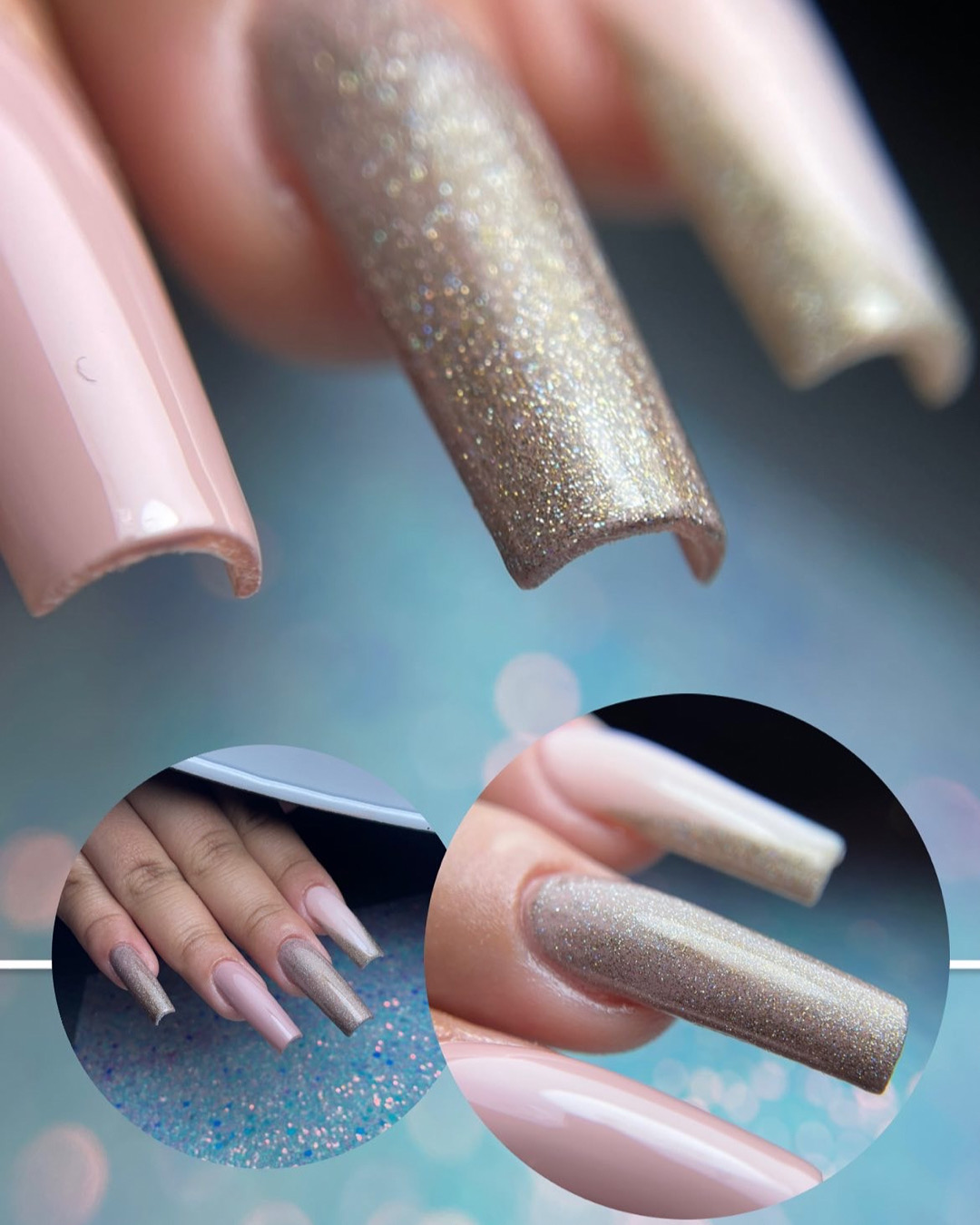 Extension réalisée à l’aide de capsules en gel (pas de plastique) prenant tout l’ongle. Idéal pour une